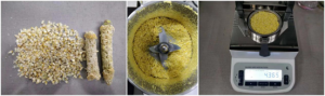 2、將大米用粉碎機(jī)打成粉末狀,再均勻平鋪在托盤(pán)上,擺放時(shí)放入約5g左右,切勿用力觸碰樣品托盤(pán)。