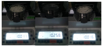 2 陶瓷粉末應(yīng)盡可能平鋪均勻且鋪滿整個(gè)托盤,使得陶瓷粉末中的水分的完全烘干且數(shù)據(jù)更加精準(zhǔn)。