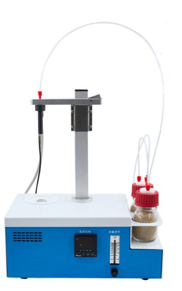 - 操作方便,用戶只需要設(shè)置合適的溫度,合適的流量,把樣品放入事先準(zhǔn)備好的樣品瓶,放入加熱器,然后把傳輸針扎入樣品瓶的硅膠墊,在儀器上點開始測量即可。